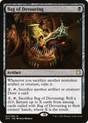 Whenever you sacrifice another nontoken artifact or creature, exile it. {2}, {T}, Sacrifice another artifact or creature: Draw a card. {3}, {T}, Sacrifice Bag of Devouring: Roll a d10. Return up to X cards from among cards exiled with Bag of Devouring to their owners' hands, where X is the result.