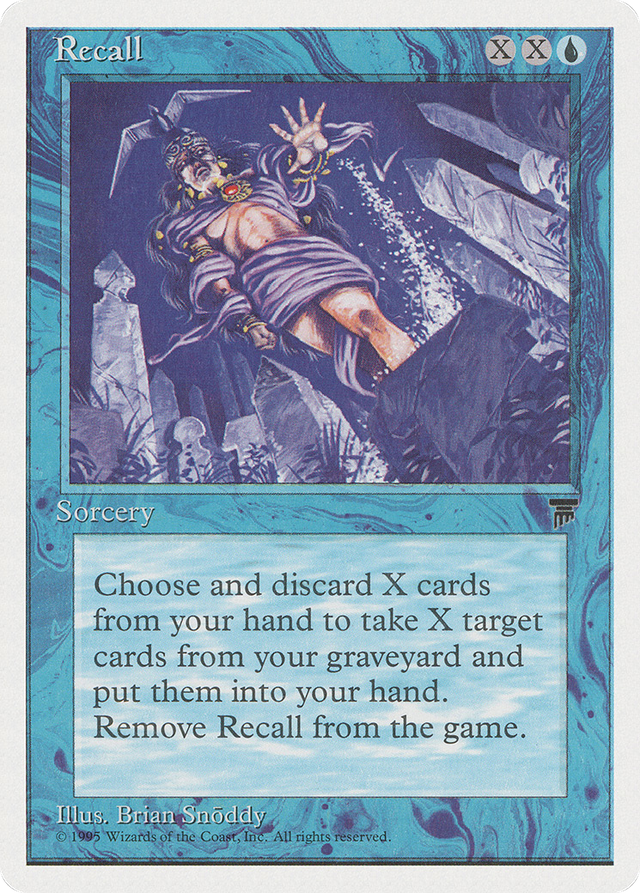 Discard X cards, then return a card from your graveyard to your hand for each card discarded this way. Exile Recall.