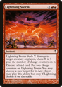 Lightning Storm deals X damage to any target, where X is 3 plus the number of charge counters on Lightning Storm.