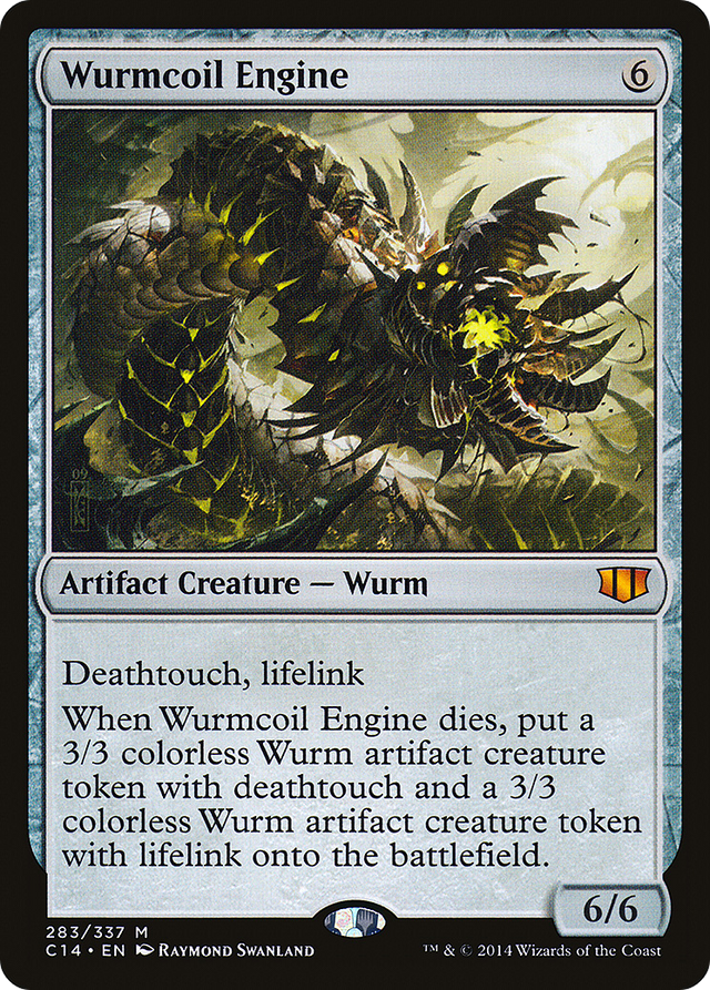When Wurmcoil Engine dies, create a 3/3 colorless Phyrexian Wurm artifact creature token with deathtouch and a 3/3 colorless Phyrexian Wurm artifact creature token with lifelink.