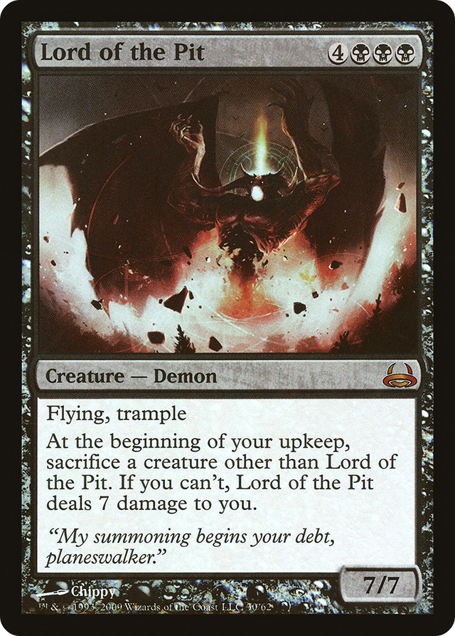At the beginning of your upkeep, sacrifice a creature other than Lord of the Pit. If you can't, Lord of the Pit deals 7 damage to you.