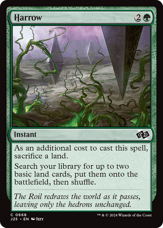 As an additional cost to cast this spell, sacrifice a land. Search your library for up to two basic land cards, put them onto the battlefield, then shuffle.
