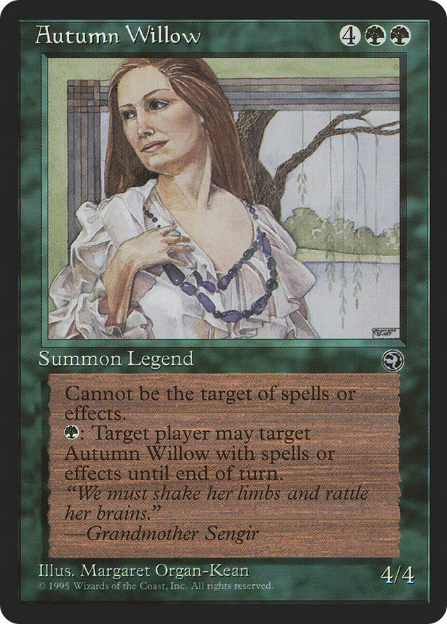 {G}: Until end of turn, Autumn Willow can be the target of spells and abilities controlled by target player as though it didn't have shroud.