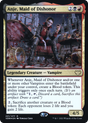 Whenever Anje, Maid of Dishonor and/or one or more other Vampires enter the battlefield under your control, create a Blood token. This ability triggers only once each turn. (It's an artifact with "{1}, {T}, Discard a card, Sacrifice this artifact: Draw a card.")