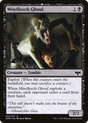 Exploit (When this creature enters the battlefield, you may sacrifice a creature.) When Mindleech Ghoul exploits a creature, each opponent exiles a card from their hand.