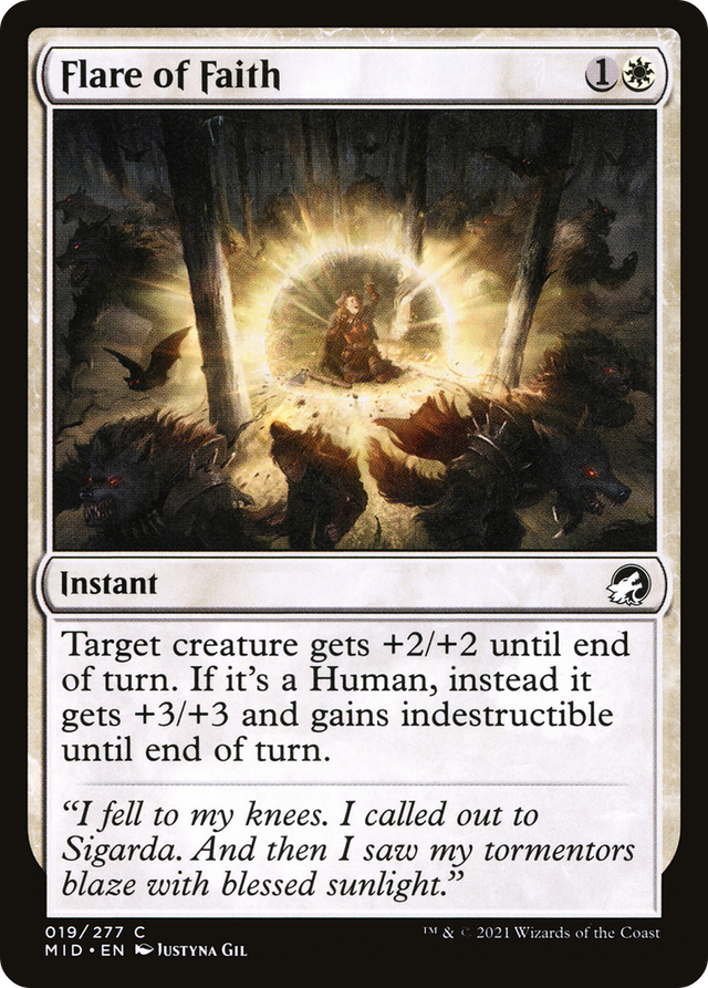 Target creature gets +2/+2 until end of turn. If it's a Human, instead it gets +3/+3 and gains indestructible until end of turn.