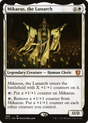 Mikaeus, the Lunarch enters the battlefield with X +1/+1 counters on it. {T}: Put a +1/+1 counter on Mikaeus. {T}, Remove a +1/+1 counter from Mikaeus: Put a +1/+1 counter on each other creature you control.