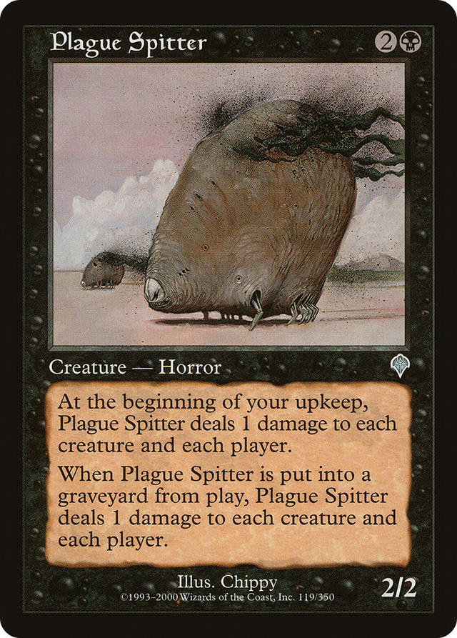 At the beginning of your upkeep, Plague Spitter deals 1 damage to each creature and each player.