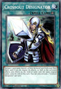 Declare 1 card name; banish 1 of that declared card from your Main Deck, and if you do, negate its effects, as well as the activated effects and effects on the field of cards with the same original name, until the end of this turn. You can only activate 1 "Crossout Designator" per turn.
