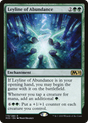 If Leyline of Abundance is in your opening hand, you may begin the game with it on the battlefield. Whenever you tap a creature for mana, add an additional {G}. {6}{G}{G}: Put a +1/+1 counter on each creature you control.