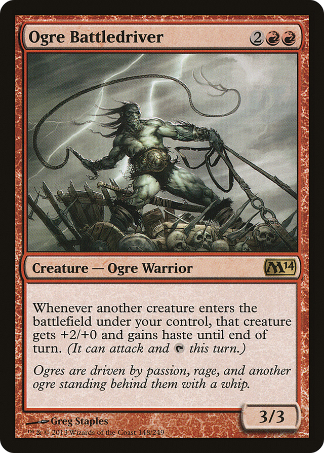 Whenever another creature enters the battlefield under your control, that creature gets +2/+0 and gains haste until end of turn. (It can attack and {T} this turn.)