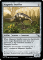 When Magnetic Snuffler enters the battlefield, return target Equipment card from your graveyard to the battlefield attached to Magnetic Snuffler. Whenever you sacrifice an artifact, put a +1/+1 counter on Magnetic Snuffler.