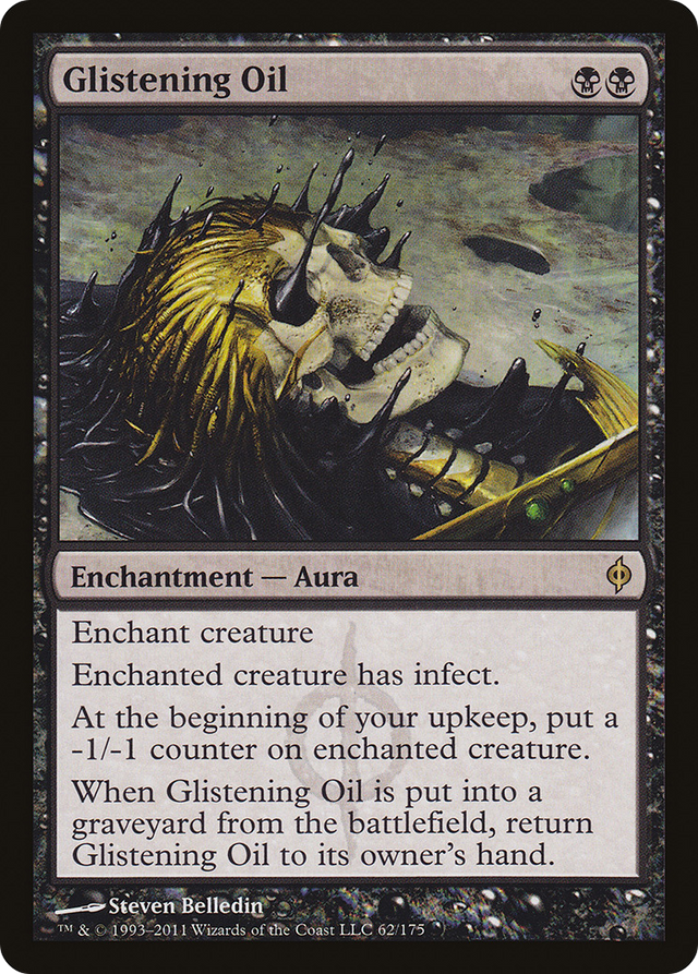 When Glistening Oil is put into a graveyard from the battlefield, return Glistening Oil to its owner's hand.