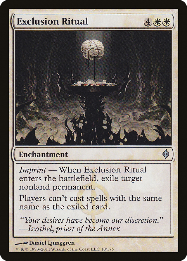 Imprint — When Exclusion Ritual enters the battlefield, exile target nonland permanent.