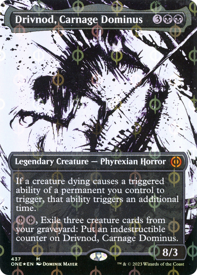Drivnod, Carnage Dominus - Borderless - Showcase - Compleat Foil [ONE-437] - NM / Foil is backordered and will ship as soon as it is back in stock.