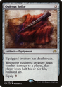 Equipped creature has deathtouch. Whenever equipped creature deals combat damage to a player, that player loses half their life, rounded up. Equip {3}