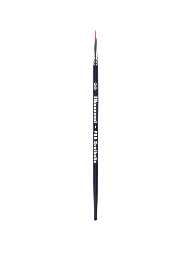 Monument has reinvented the synthetic brush! Our new PRO Synthetics mimic sable perfectly, delivering more "snap" than natural hair brushes, while maintaining great paint loading and control. All the feel and handling of a natural brush in a full synthetic. Great for everything from smooth blends and edge highlights to texturing and dotting those eyes. The ultimate brush for fine detailing and finishing.