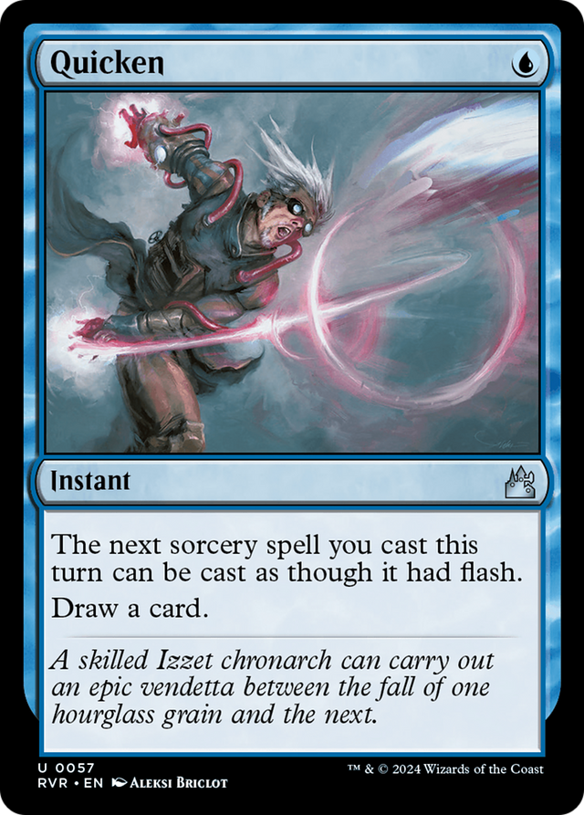 The next sorcery spell you cast this turn can be cast as though it had flash. (It can be cast any time you could cast an instant.) Draw a card.