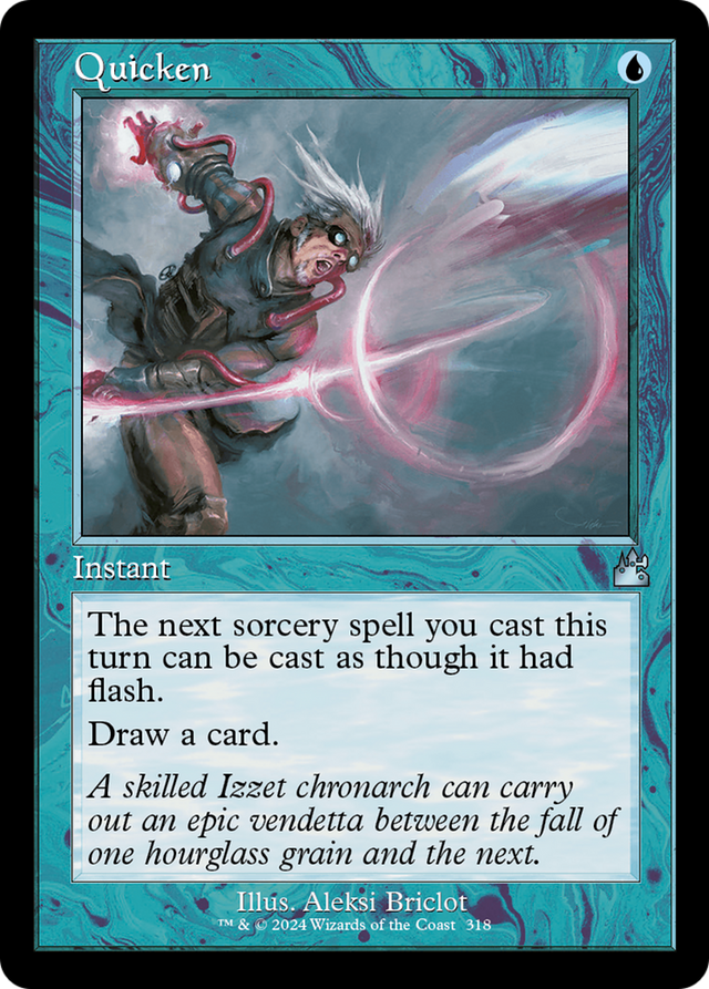 The next sorcery spell you cast this turn can be cast as though it had flash. (It can be cast any time you could cast an instant.) Draw a card.