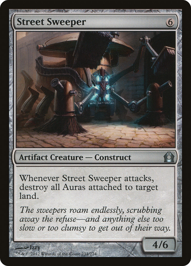 Whenever Street Sweeper attacks, destroy all Auras attached to target land.