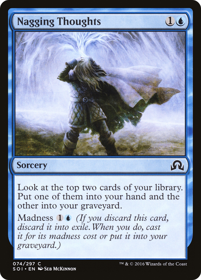 Madness {1}{U} (If you discard this card, discard it into exile. When you do, cast it for its madness cost or put it into your graveyard.)