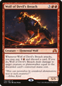 Whenever Wolf of Devil's Breach attacks, you may pay {1}{R} and discard a card. If you do, Wolf of Devil's Breach deals damage to target creature or planeswalker equal to the discarded card's mana value.