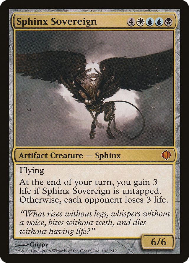 At the beginning of your end step, you gain 3 life if Sphinx Sovereign is untapped. Otherwise, each opponent loses 3 life.