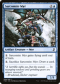 {2}: Sarcomite Myr gains flying until end of turn. {2}, Sacrifice Sarcomite Myr: Draw a card.