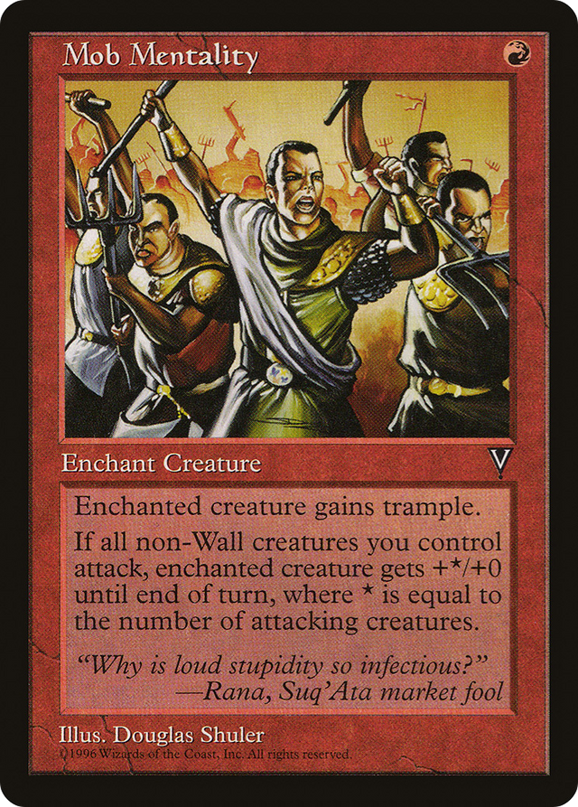 Enchant creature Enchanted creature has trample. Whenever all non-Wall creatures you control attack, enchanted creature gets +X/+0 until end of turn, where X is the number of attacking creatures.