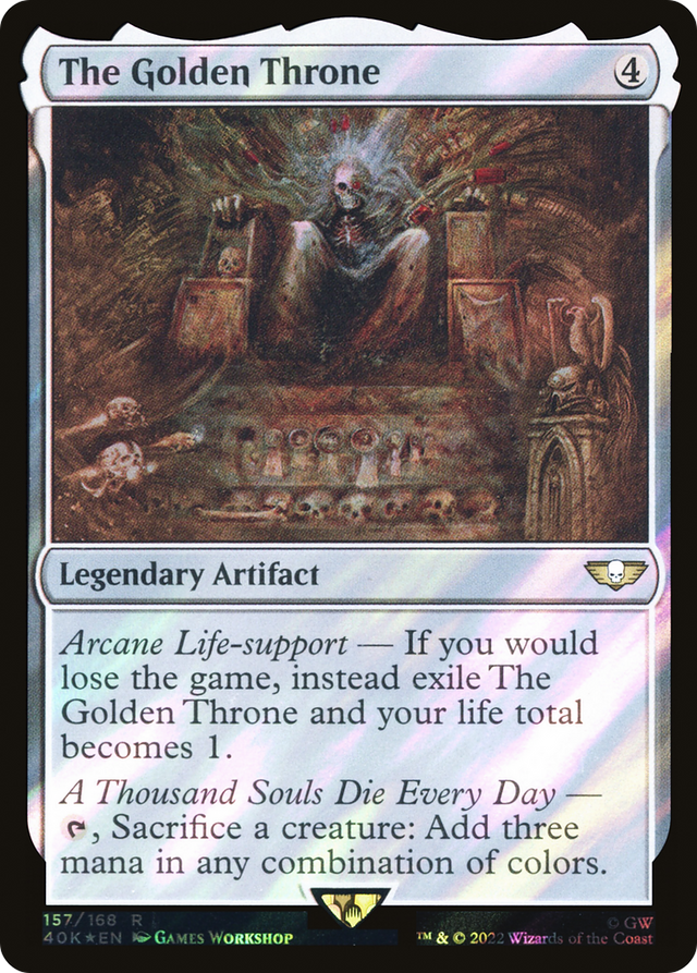 Arcane Life-support — If you would lose the game, instead exile The Golden Throne and your life total becomes 1.