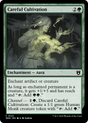 Enchant artifact or creature As long as enchanted permanent is a creature, it gets +1/+3 and has reach and "{T}: Add {G}{G}." Channel — {1}{G}, Discard Careful Cultivation: Create a 1/1 green Human Monk creature token with "{T}: Add {G}."