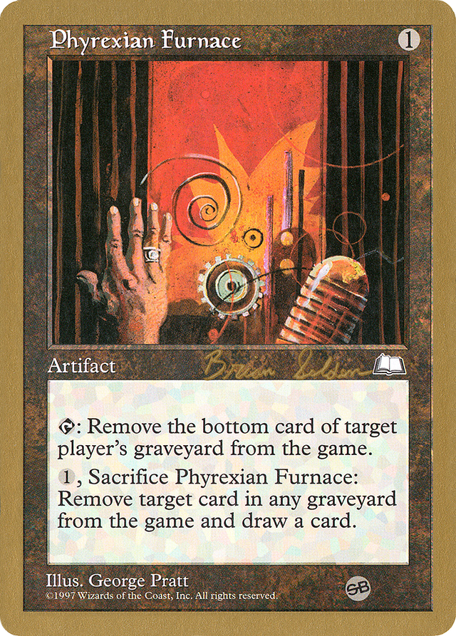 {T}: Exile the bottom card of target player's graveyard. {1}, Sacrifice Phyrexian Furnace: Exile target card from a graveyard. Draw a card.