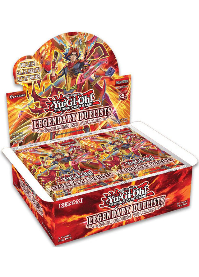 Contains:36 packs of Legendary Duelists: Soulburning Volcano 1st EditionEach pack consists of 5 Cards