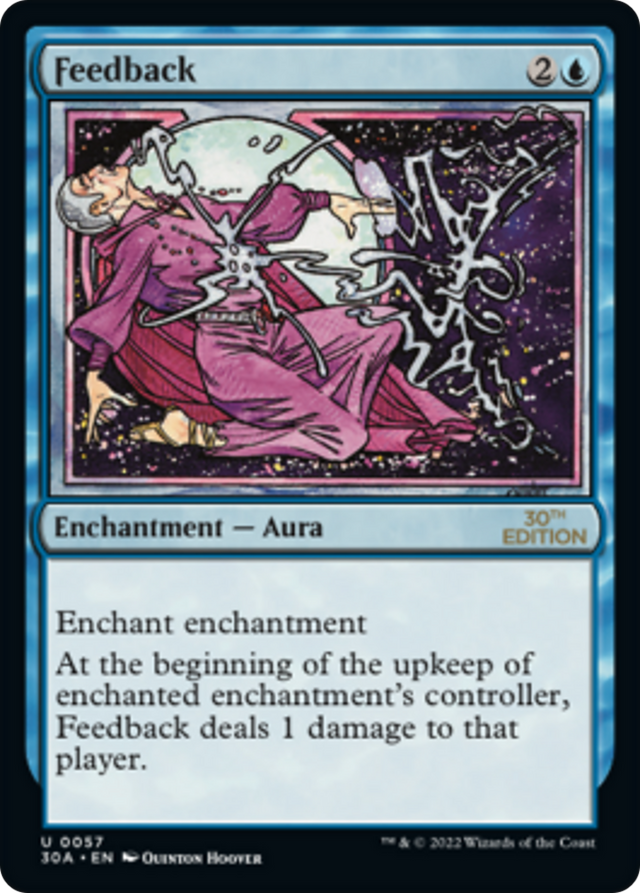 At the beginning of the upkeep of enchanted enchantment's controller, Feedback deals 1 damage to that player.