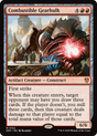 When Combustible Gearhulk enters, target opponent may have you draw three cards. If the player doesn't, you mill three cards, then Combustible Gearhulk deals damage to that player equal to the total mana value of those cards.