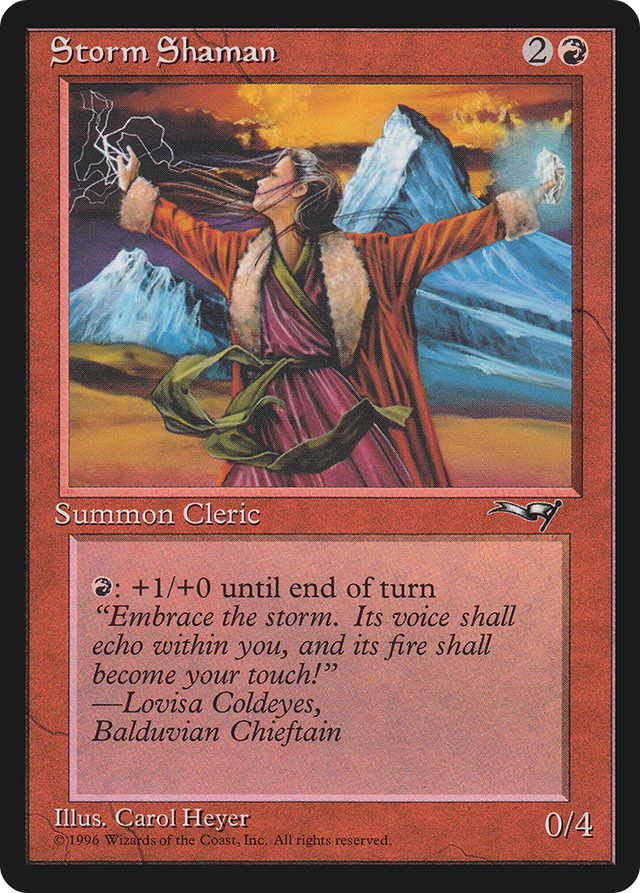 {R}: Storm Shaman gets +1/+0 until end of turn.