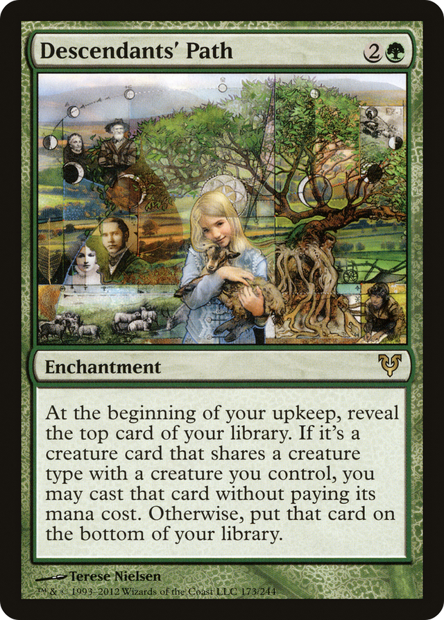 At the beginning of your upkeep, reveal the top card of your library. If it's a creature card that shares a creature type with a creature you control, you may cast it without paying its mana cost. If you don't cast it, put it on the bottom of your library.