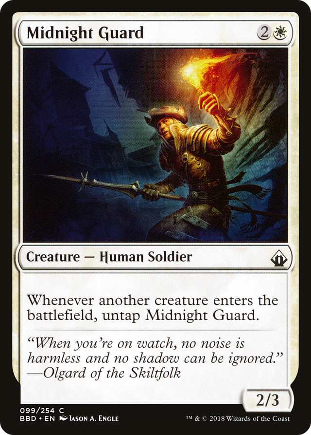 Whenever another creature enters the battlefield, untap Midnight Guard.
