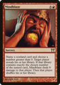 Choose a nonland card name and a number greater than 0. Target player reveals their library. If that library contains exactly the chosen number of cards with the chosen name, Mindblaze deals 8 damage to that player. Then that player shuffles.
