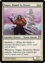 Bushido 1 (Whenever this creature blocks or becomes blocked, it gets +1/+1 until end of turn.) Whenever Nagao, Bound by Honor attacks, Samurai creatures you control get +1/+1 until end of turn.