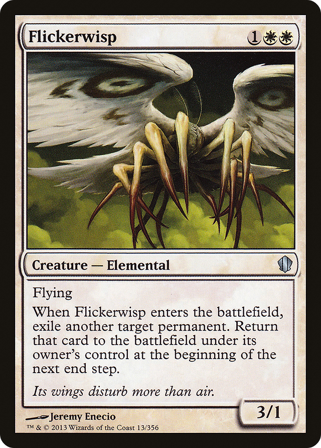When Flickerwisp enters the battlefield, exile another target permanent. Return that card to the battlefield under its owner's control at the beginning of the next end step.