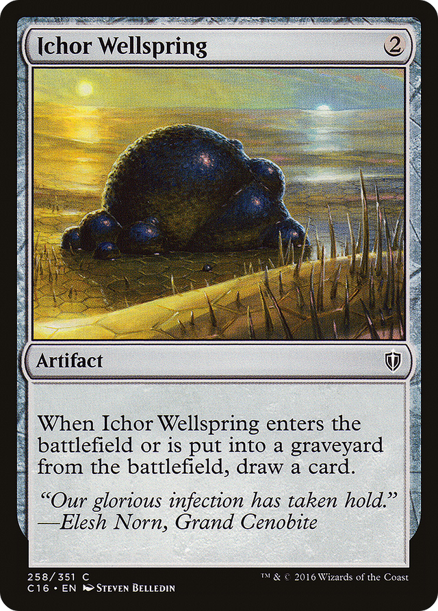 When Ichor Wellspring enters the battlefield or is put into a graveyard from the battlefield, draw a card.