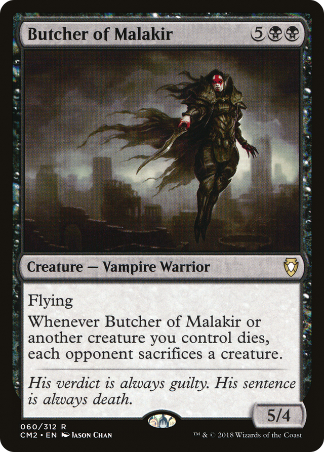 Flying Whenever Butcher of Malakir or another creature you control dies, each opponent sacrifices a creature.