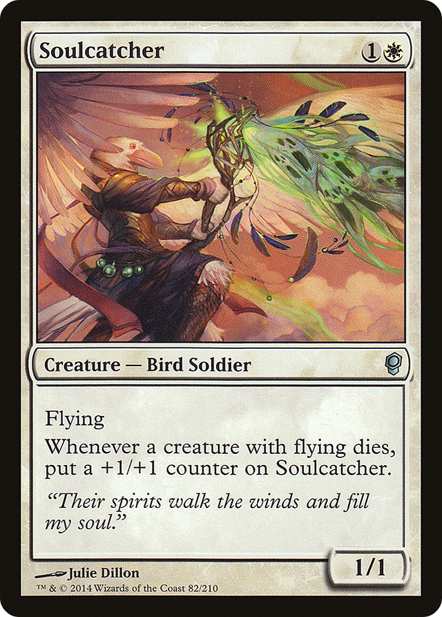 Whenever a creature with flying dies, put a +1/+1 counter on Soulcatcher.