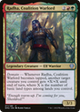 Domain — Whenever Radha, Coalition Warlord becomes tapped, another target creature you control gets +X/+X until end of turn, where X is the number of basic land types among lands you control.