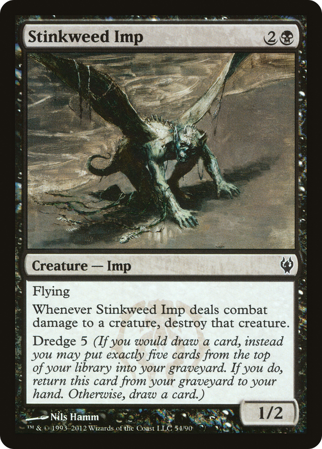 Whenever Stinkweed Imp deals combat damage to a creature, destroy that creature.