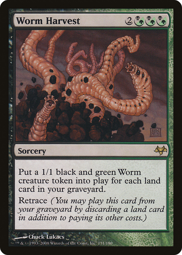 Create a 1/1 black and green Worm creature token for each land card in your graveyard.