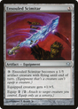 {3}: Ensouled Scimitar becomes a 1/5 Spirit artifact creature with flying until end of turn. (Equipment that's a creature can't equip a creature.)