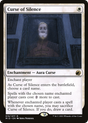 Enchant player As Curse of Silence enters the battlefield, choose a card name. Spells with the chosen name enchanted player casts cost {2} more to cast. Whenever enchanted player casts a spell with the chosen name, you may sacrifice Curse of Silence. If you do, draw a card.