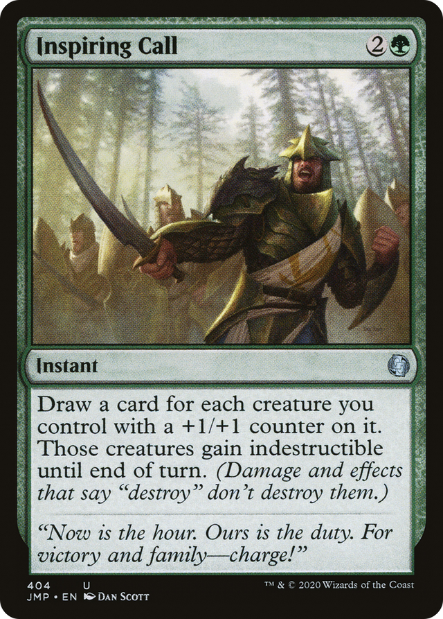 Draw a card for each creature you control with a +1/+1 counter on it. Those creatures gain indestructible until end of turn. (Damage and effects that say "destroy" don't destroy them.)